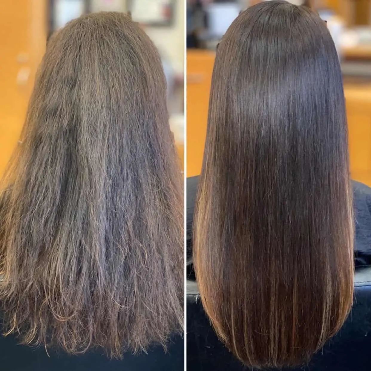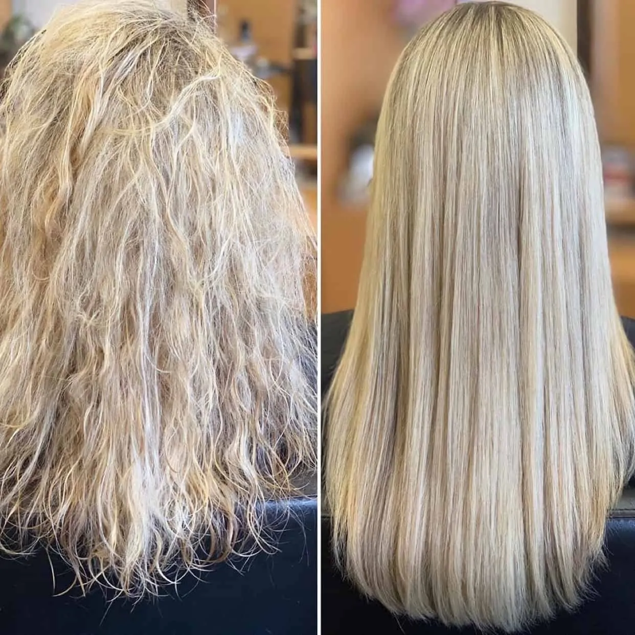 This results in smoother and easier to manage hair that reduces frizz and styling time. Keratins do not chemically restructure the hair so the results are not permanent.