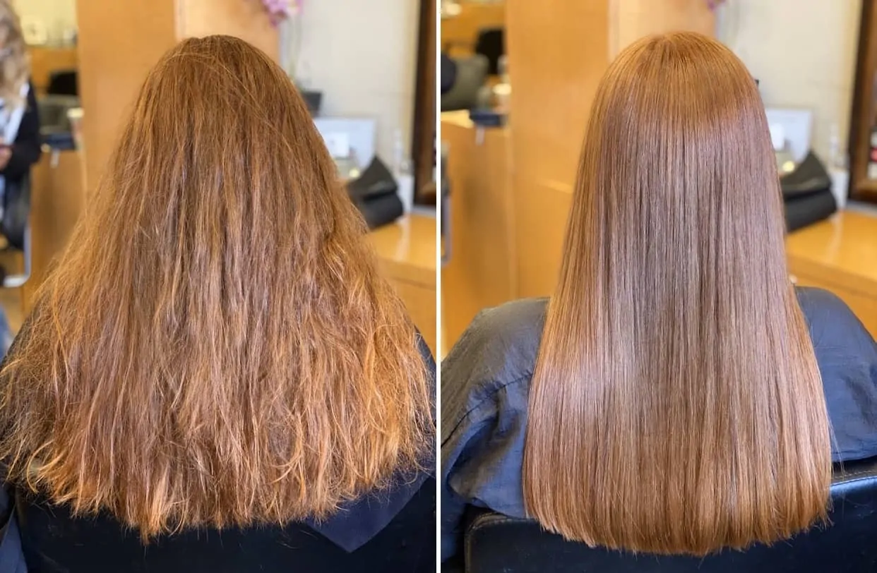 Keratin treatments are smoothing treatments. Plus Keratin is the natural protein of the hair. This treatment re-infuses the hair shaft with keratin, filling in the gaps of the cuticle, reinforcing the hair structure while adding shine.