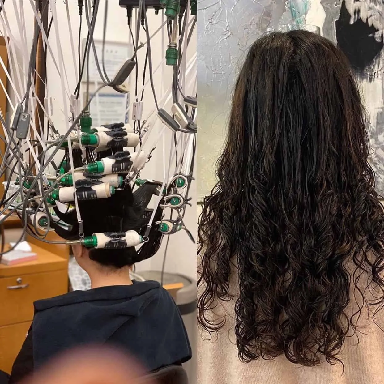 The traditional perm results in a wave pattern that is more obvious when the hair is wet and looser when the hair is dry. In Addition digital perms result in wave patterns that are more obvious when the hair is dry.